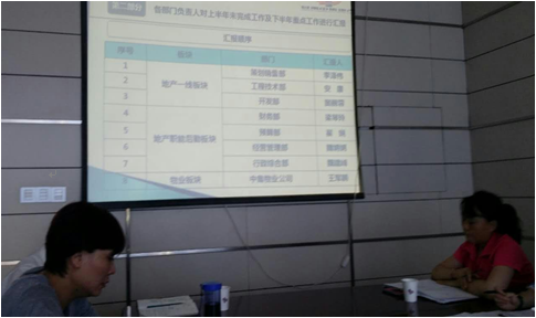 會上,房地產(chǎn)公司重點對上半年工作完成情況從企業(yè)經(jīng)濟發(fā)展、項目工程施工建設(shè)、物業(yè)經(jīng)營服務(wù)、內(nèi)部管理等方面進行了分析總結(jié),并對下半年重點工作進行了匯報,明確了下半年目標(biāo)任務(wù)。