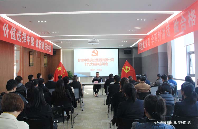 11月23日下午,甘肅中集實(shí)業(yè)集團(tuán)有限公司黨委在公司黨建活動(dòng)室開展黨的十九大精神專題教育活動(dòng),公司黨委書記、董事長周啟濤代表集團(tuán)公司黨委,以《深入學(xué)習(xí)黨的十九大精神,建設(shè)美好幸福新蘭州》為主題,向公司全體黨員、入黨積極分子、集團(tuán)公司各版塊及各部門負(fù)責(zé)人宣講黨的十九大精神。