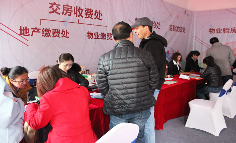 在等待區(qū)和業(yè)務(wù)辦理區(qū),現(xiàn)場(chǎng)有工作人員悉心準(zhǔn)備的交房流程導(dǎo)示圖,詳盡的說(shuō)明了交房工作的整個(gè)流程。同時(shí),工作人員的耐心引導(dǎo)和悉心解說(shuō)讓業(yè)主對(duì)整個(gè)交房工作流程有全面的了解。