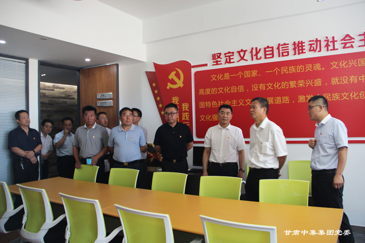 調(diào)研組一行首先參觀了集團(tuán)公司黨委宣傳陣地、黨員活動(dòng)室、談心談話室、閱覽室、健身中心等,通過查看黨支部建設(shè)標(biāo)準(zhǔn)化資料、聽取專題工作匯報(bào)和現(xiàn)場交談后,韓 旭副局長對(duì)甘肅中集集團(tuán)黨委創(chuàng)新工作思路給予充分肯定,重點(diǎn)對(duì)黨支部建設(shè)標(biāo)準(zhǔn)化、樓宇黨建工作特色和亮點(diǎn),特別是集團(tuán)公司黨委開辟了非公經(jīng)濟(jì)組織黨建工作的新路子、在開展 “三崗聯(lián)創(chuàng)”、“三亮”、“立足崗位做貢獻(xiàn)”等活動(dòng)中取得優(yōu)異成績給予充分肯定。他強(qiáng)調(diào):“甘肅中集集團(tuán)黨委黨建工作抓住了非公企業(yè)黨建存在問題的關(guān)鍵,充分發(fā)揮了黨組織的政治優(yōu)勢和組織優(yōu)勢,通過黨員隊(duì)伍建設(shè)和加強(qiáng)組織力,提高了企業(yè)經(jīng)營管理水平,黨建各項(xiàng)工作求真務(wù)實(shí),開拓創(chuàng)新”。他現(xiàn)場向西北五省、市非公黨建負(fù)責(zé)人強(qiáng)調(diào):“要以此次觀摩為契機(jī),認(rèn)真學(xué)習(xí)借鑒甘肅中集集團(tuán)黨委的成功經(jīng)驗(yàn)和做法,特別是把黨支部建設(shè)在樓宇、打造紅色紐帶工程和深入推進(jìn)黨支部建設(shè)標(biāo)準(zhǔn)化、強(qiáng)化組織建設(shè)、創(chuàng)新活動(dòng)方式、營造非公經(jīng)濟(jì)組織黨建工作的濃厚氛圍、為提升樓宇總部經(jīng)濟(jì)高質(zhì)量發(fā)展提供堅(jiān)強(qiáng)的政治保障和組織保障方面要大力學(xué)習(xí)和推廣!