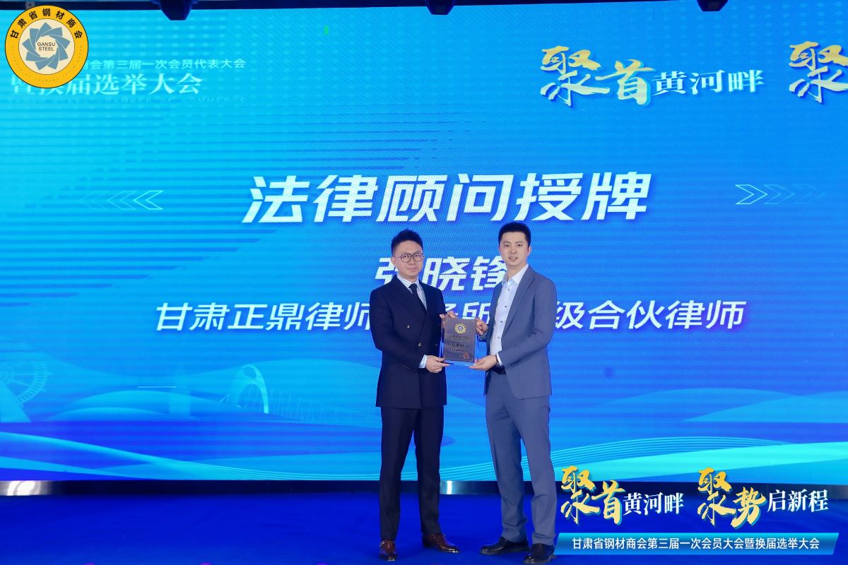 甘肅省鋼材商會會長周啟濤為法律顧問單位--甘肅正鼎律師事務(wù)所授牌